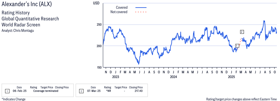 Alexander's Inc ( ALX ) Disclosure / Price Chart(s)