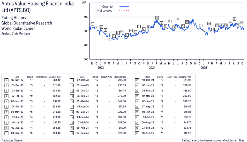 Aptus Value Housing Finance ( APTS.BO ) Disclosure / Price Chart(s) / Valuation & Risk