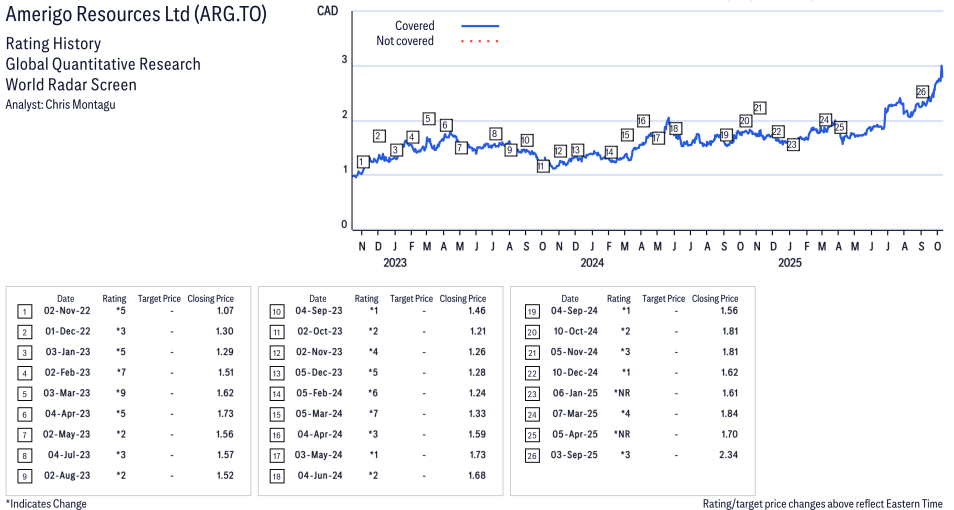 Amerigo Resources Ltd ( ARG.TO ) Disclosure / Price Chart(s)
