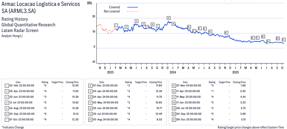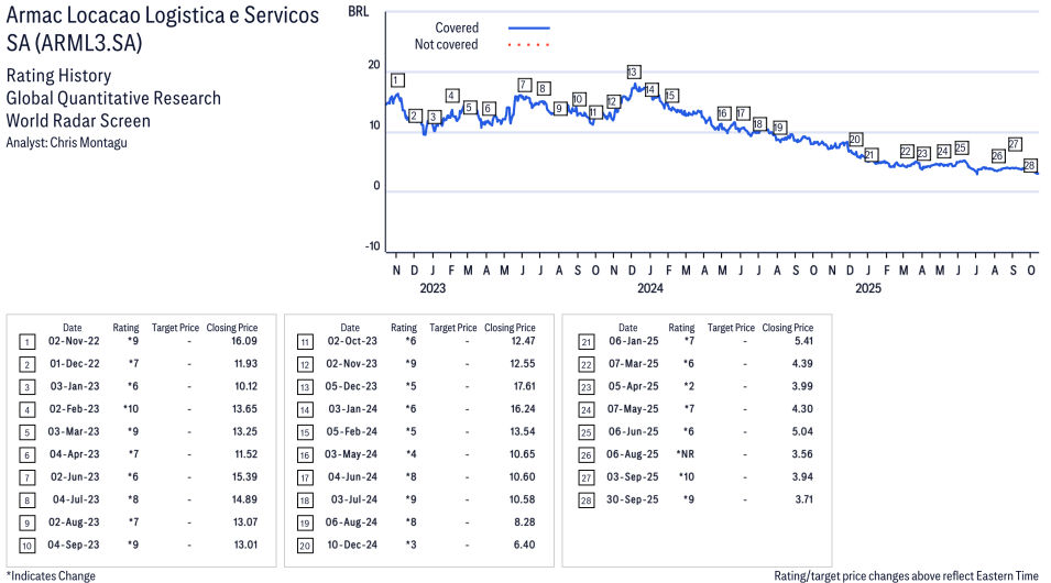 Armac Locacao Logistica e Servicos SA ( ARML3.SA ) Disclosure / Price Chart(s) / Valuation & Risk