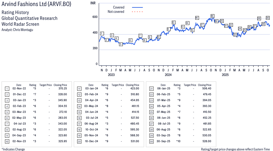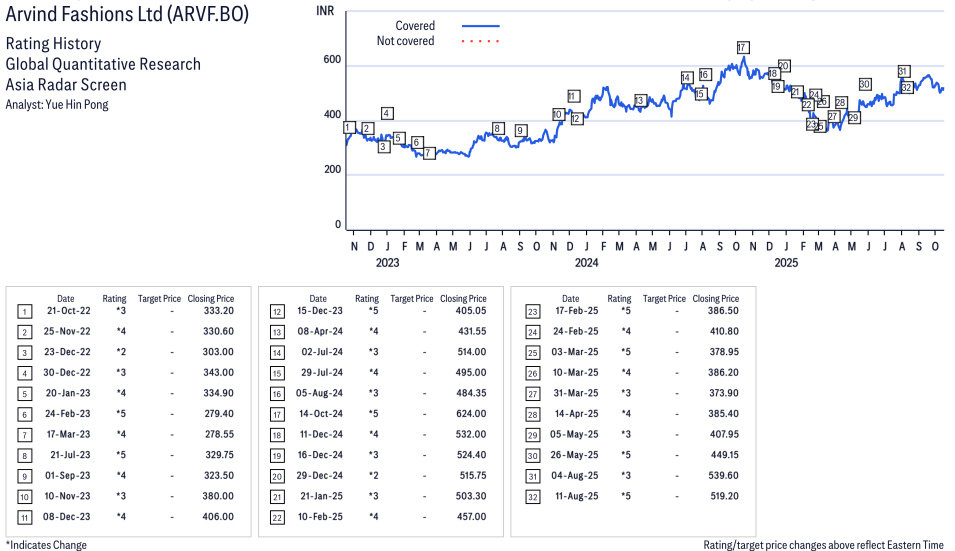 Arvind Fashions Ltd ( ARVF.NS ) Disclosure / Price Chart(s)