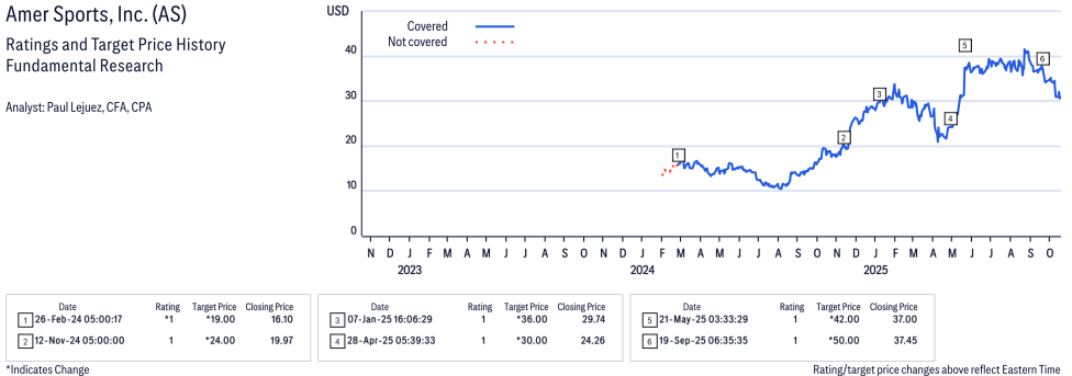 Amer Sports, Inc. ( AS ) Disclosure / Price Chart(s) / Valuation & Risk