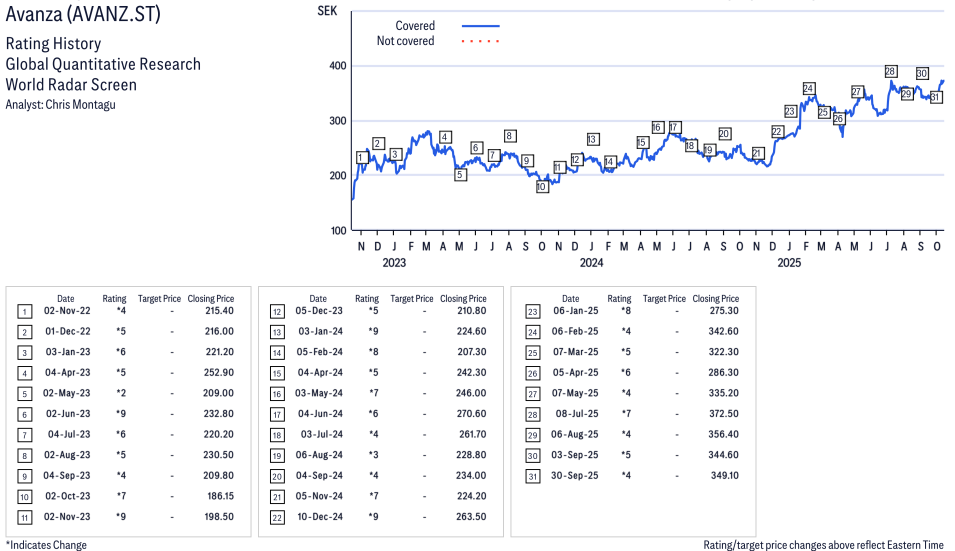 Avanza ( AVANZ.ST ) Disclosure / Price Chart(s) / Valuation & Risk