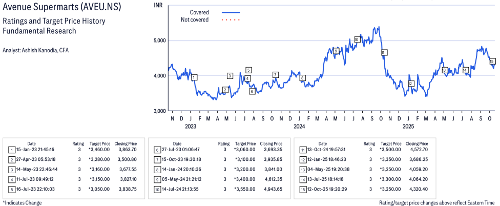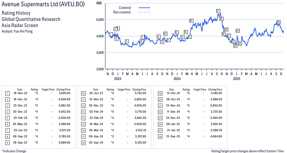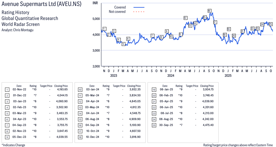 Avenue Supermarts ( AVEU.NS ) Disclosure / Price Chart(s) / Valuation & Risk