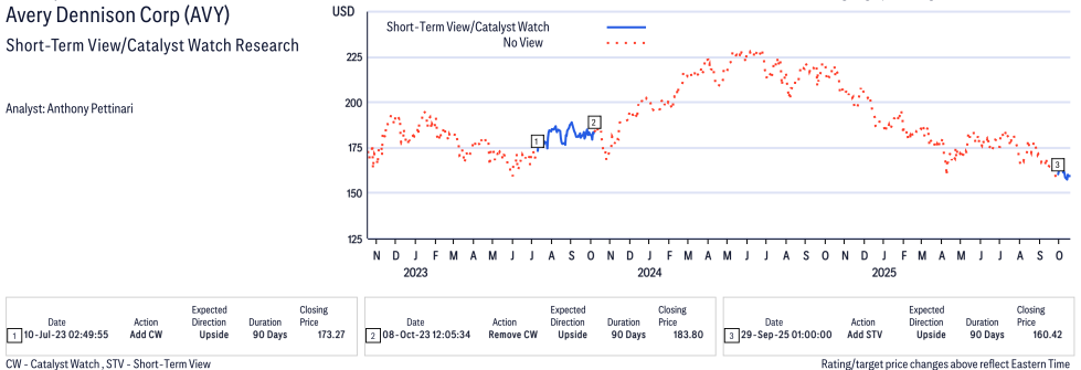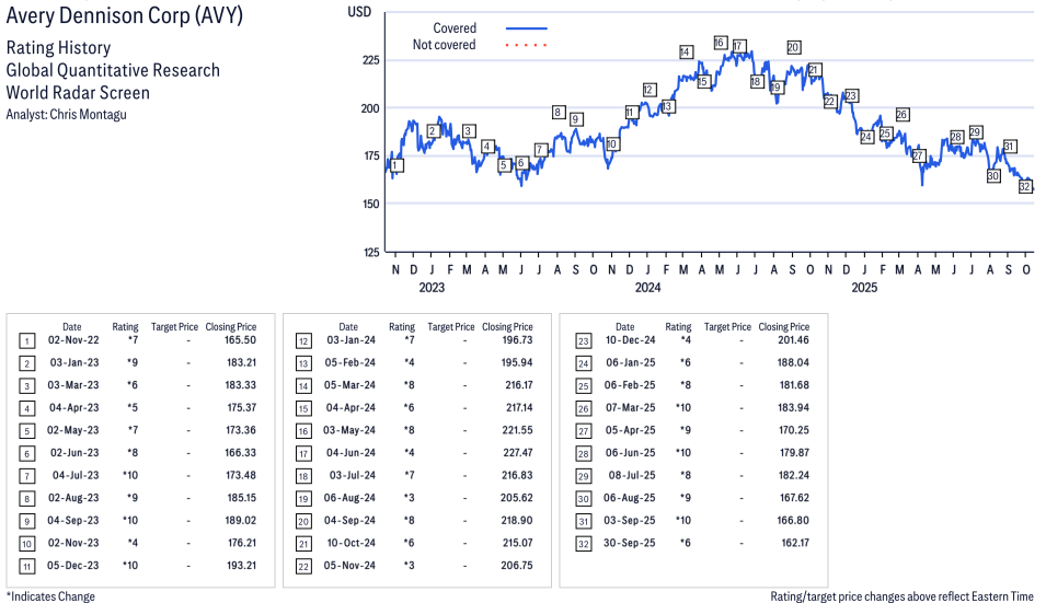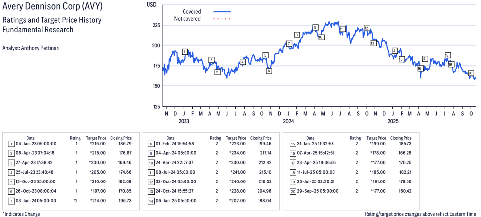 Avery Dennison Corp ( AVY ) Disclosure / Price Chart(s) / Valuation & Risk