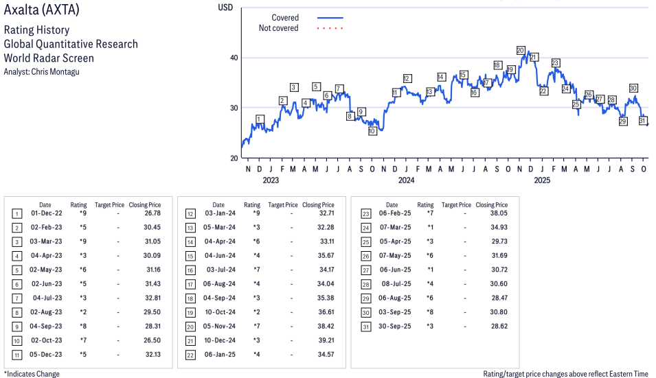 Axalta ( AXTA ) Disclosure / Price Chart(s) / Valuation & Risk