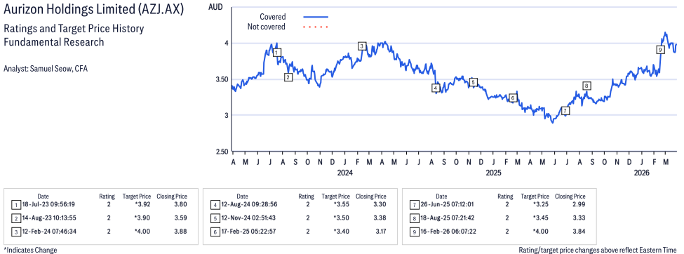 Aurizon Holdings Limited ( AZJ.AX ) Disclosure / Price Chart(s) / Valuation & Risk