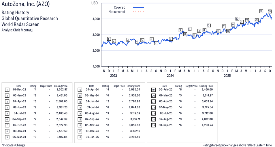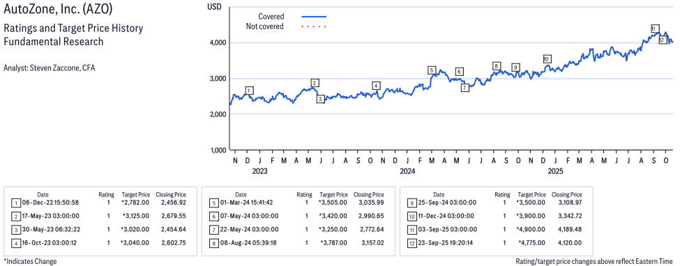 AutoZone, Inc. ( AZO ) Disclosure / Price Chart(s) / Valuation & Risk