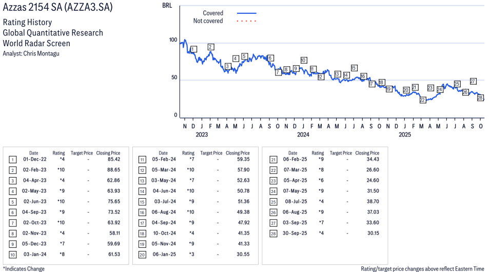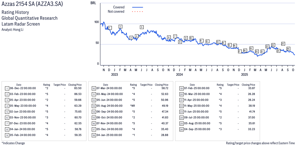Azzas 2154 SA ( AZZA3.SA ) Disclosure / Price Chart(s) / Valuation & Risk