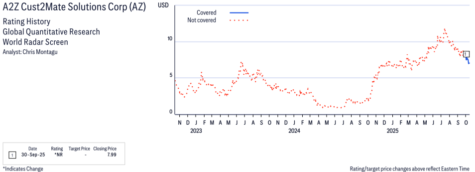 A2Z Cust2Mate Solutions Corp ( AZ ) Disclosure / Price Chart(s)