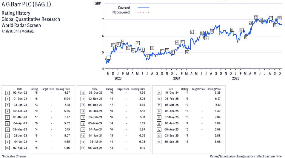 A G Barr PLC ( BAG.L ) Disclosure / Price Chart(s)