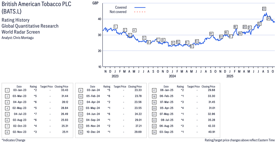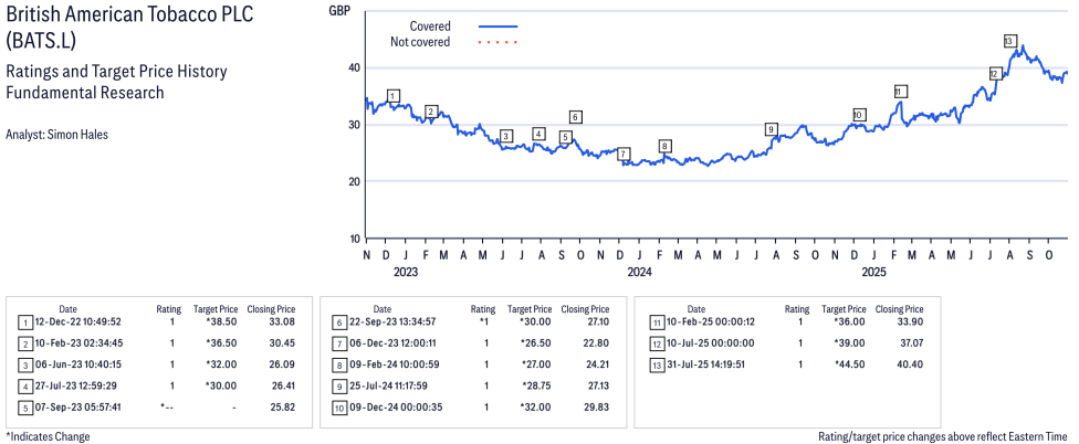 British American Tobacco PLC ( BATS.L ) Disclosure / Price Chart(s) / Valuation & Risk