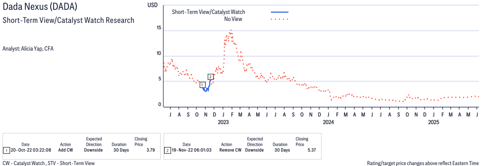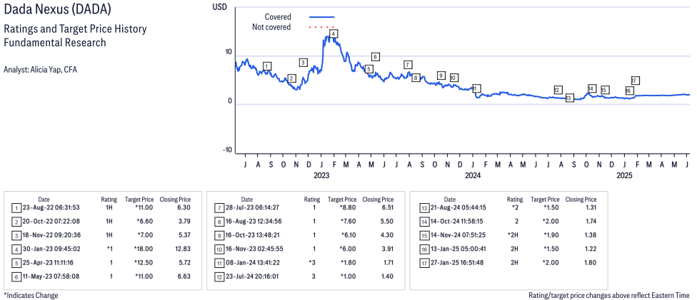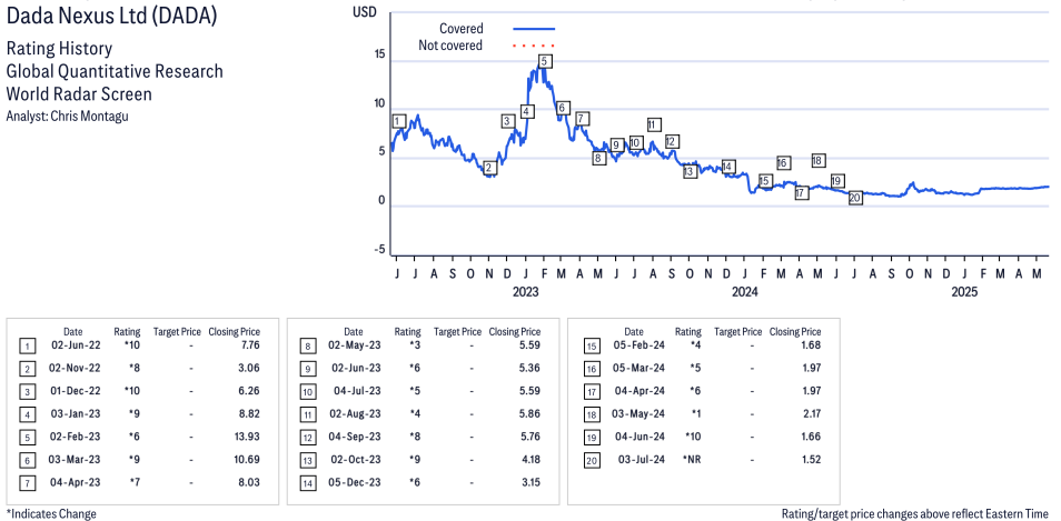 Dada Nexus ( DADA ) Disclosure / Price Chart(s) / Valuation & Risk