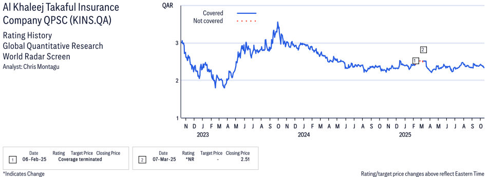 Al Khaleej Takaful Insurance Company QPSC ( KINS.QA ) Disclosure / Price Chart(s)