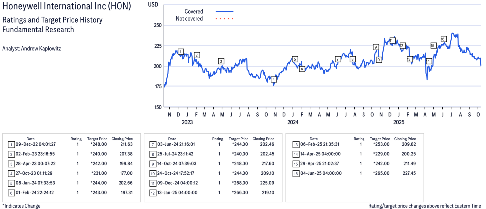 Honeywell International Inc ( HON ) Disclosure / Price Chart(s) / Valuation & Risk