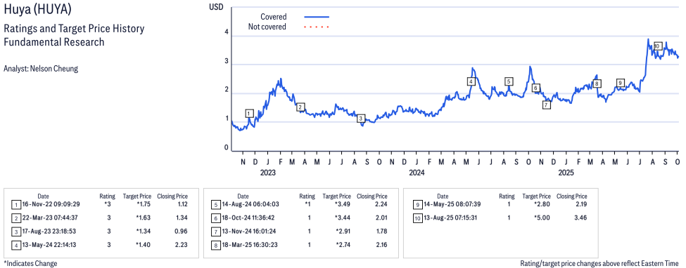Huya ( HUYA ) Disclosure / Price Chart(s) / Valuation & Risk