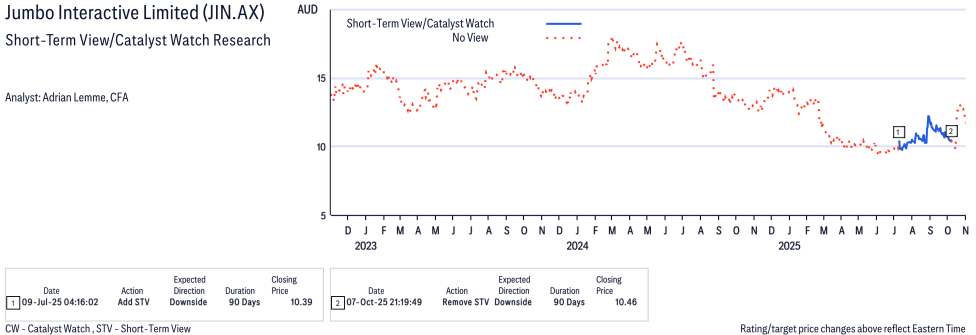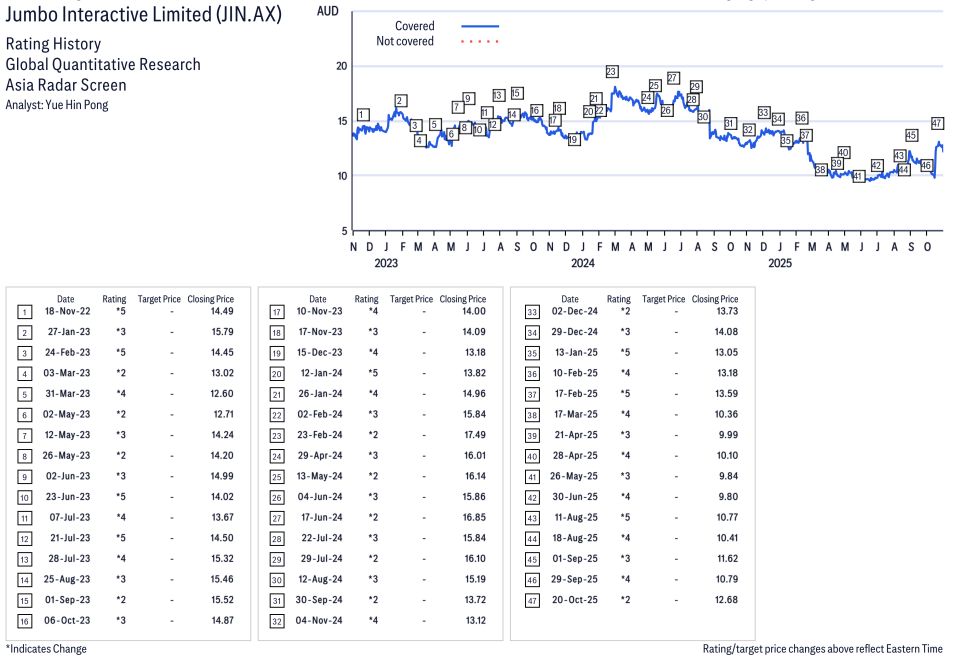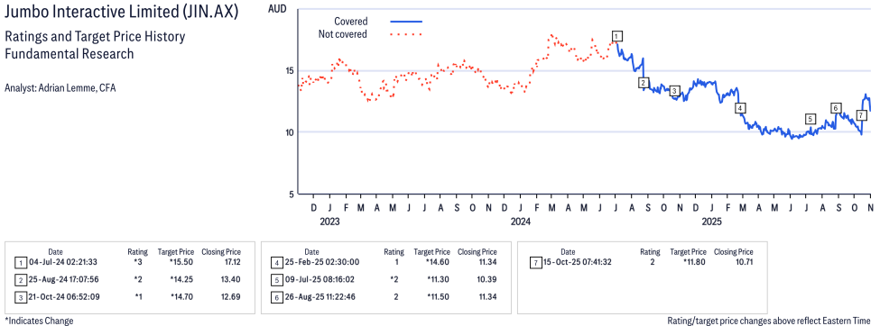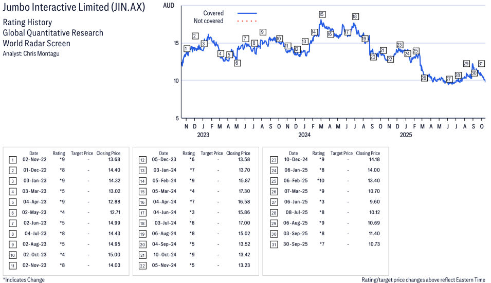 Jumbo Interactive Limited ( JIN.AX ) Disclosure / Price Chart(s) / Valuation & Risk