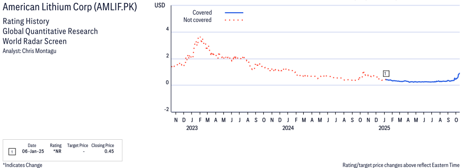 American Lithium Corp ( MML.V ) Disclosure / Price Chart(s)