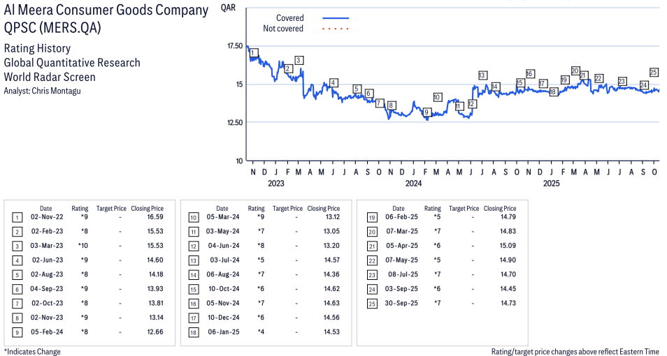 Al Meera Consumer Goods Company QPSC ( MERS.QA ) Disclosure / Price Chart(s)