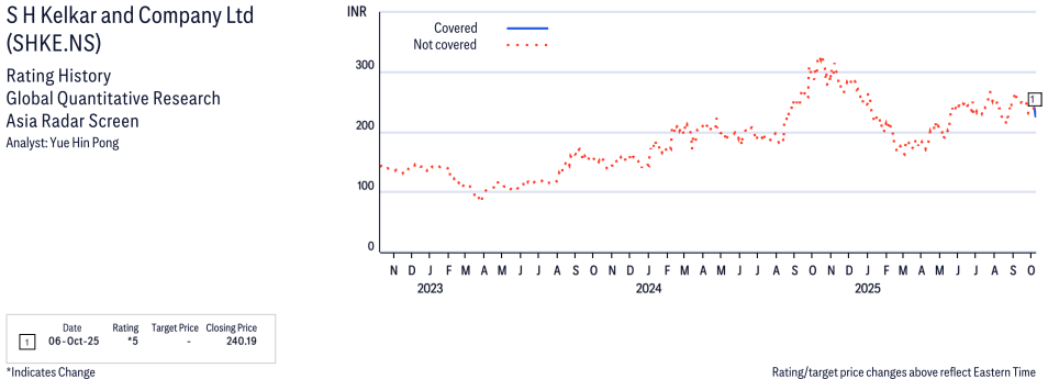 S H Kelkar and Company Ltd ( SHKE.NS ) Disclosure / Price Chart(s)
