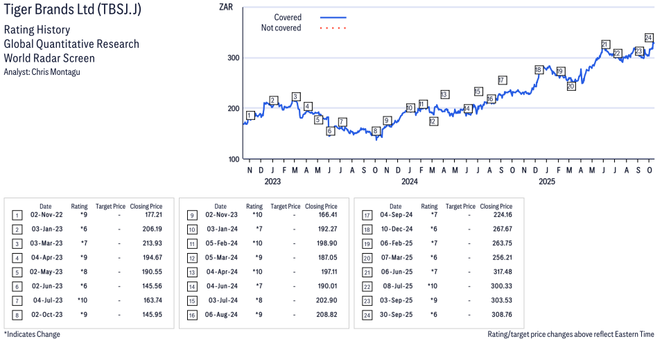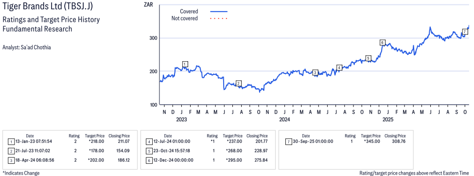 Tiger Brands Ltd ( TBSJ.J ) Disclosure / Price Chart(s) / Valuation & Risk