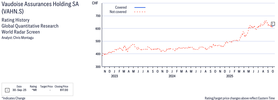 Vaudoise Assurances Holding SA ( VAHN.S ) Disclosure / Price Chart(s)